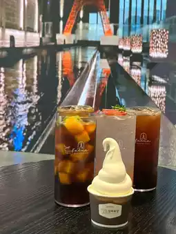 The Amanchu, a combination of iced tea and mango, is filled with frozen mango instead of ice,