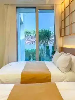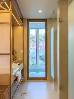 The garden view through the folding doors and full-length windows was truly beautiful while swimming. I wish I could have opened the folding doors to swim, but unfortunately, it was too cold during peak mosquito season, so I couldn't. It was still beautiful in its own right. (˶’ ᵕ ' 🫶)