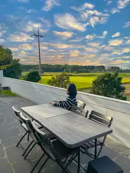 Relax and unwind while gazing at the lush countryside views—it’s pure healing ✨