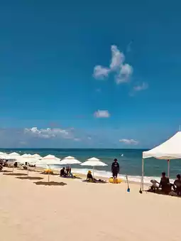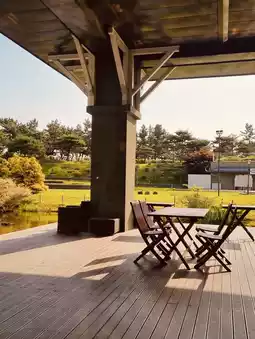 The outdoor swimming pool area at Lakai Sandpine Resort Gangneung is a true oasis designed to maximize the beach aesthetic. While not an infinity pool directly merging with the horizon, its placement adjacent to the resort's expansive green lawns and just a stone's throw from Gyeongpo Beach creates a beautiful resort ambiance. The pool is well-maintained, clean, and spacious, making it a perfect spot for families and relaxation. Guests often appreciate the sense of space and tranquility, contrasting with the bustling beaches. Remember that pool access is typically seasonal (not year-round) and may incur a separate fee or be included only in specific package deals. This pool area, surrounded by the resort’s unique architecture, perfectly captures the 'Shining Ocean' theme without the intense crowds of the public beach.