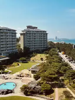 The resort focuses heavily on open space and relaxation. It features a clean outdoor swimming pool (seasonal) and expansive, manicured lawns perfect for children's activities or light picnics. Key to its appeal is the direct access to Gyeongpo Beach, which is just a minute's walk away. On-site amenities also include a Sky Lounge, Lobby Lounge, and Fitness facilities. The beautiful gardens and seamless access to the natural coastline provide a fully integrated resort experience