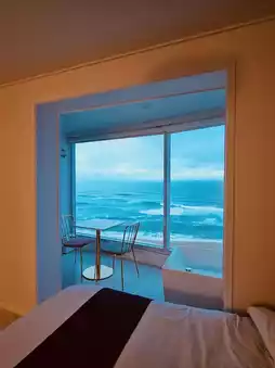 The absolute non-negotiable highlight for any couple is the incredible ocean-facing bathtub. Imagine sharing a glass of wine while the sky outside transforms into brilliant shades of orange and pink, watching the sun dip below the horizon right from the warmth of your room. It is a cinematic, unforgettable experience and arguably the most romantic feature available.