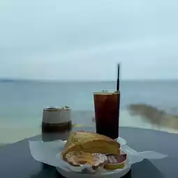 A large cafe with an ocean view. Made and disposed of on the same day, no chemical seasonings used!!!