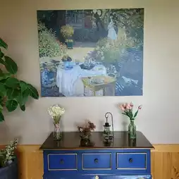 There is a spacious parking lot right in front, and you can buy souvenirs (coffee jam, coffee bean bread, cookies, etc.) at the cafe right next to it, and the paintings on display were so pretty that it was nice to look at them.