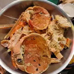 You can choose your crabs and pay for them before entering the restaurant. The table service fee is paid separately after your meal. There are two floors, and they weren't open at 8:00 PM when I visited. The restrooms are clean and have separate stalls for men and women. There's plenty of tables, and I heard there are two buildings: the main building and an annex. Parking is free, with a paid parking lot near the restaurant and a parking lot near the harbor. Parking is free if you pay close attention.