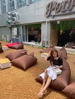 It felt like I was traveling to Bali because it was full of exotic interiors filled with greenery. There is a folding door that leads directly to the outside, so it would be nice to lie on a beanbag and have a beer or cocktail and relax.