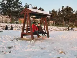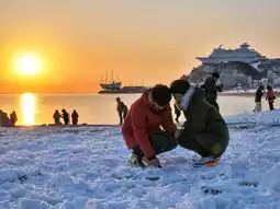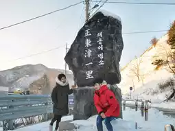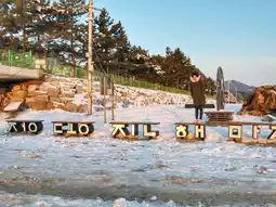 If the sunrise I saw from Homigot was a breathtaking feeling that the sun looked really big and pretty, the sunrise I saw from Jeongdongjin was a feeling that I couldn't describe. Thanks to the heavy snowfall the day before, the beach was covered in snow, and the excitement of that winter day when my feet sank in was added, so among the countless sunrises I've seen, this one stayed in my memory for a long time. The shape of the Sun Cruise's sailboat seems to be a pretty sunrise point in Jeongdongjin!