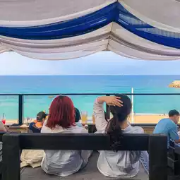 This is the ocean view cafe 'Bossanova' located on Anmok Beach Cafe Street!