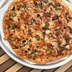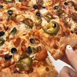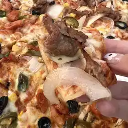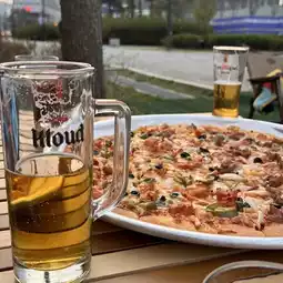 I ordered a half-and-half bulgogi pizza and hot chicken pizza.