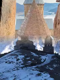 📍Ananuri Fortress: Located on the way to Gudauri, it is an important attraction on the Georgian Military Highway. The fortress consists of defensive towers, a church, and a palace, situated on the beautiful shores of Jinvali Lake. The combination of the lake and mountain scenery with the ancient castle creates a fairy-tale world.