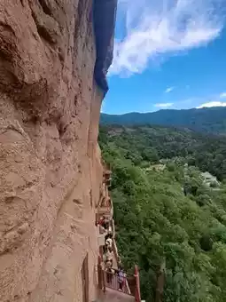 This place is the Maijishan Grottoes, located in Maiji District, Tianshui City, Gansu Province, China. The grotto is built on a steep mountain wall. There are more than 7,000 Buddha statues, some of which are super well preserved. The smiling expression is unforgettable ~😊