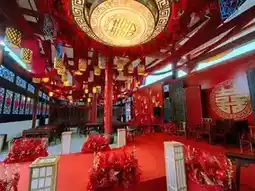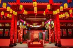 The construction of Jiangxi Hakka Cultural City is very unique. There is a square-shaped building with a dragon pattern inside, which is the Hakka ancestral hall. There are big red lanterns hanging high inside and the building is covered with wedding characters. The atmosphere is full of lights and decorations and it is full of joy. Later I learned that Hakka people can rent Hakka ancestral halls as wedding venues. It is really meaningful to hold a wedding in such a traditional venue. Moreover, I heard from the staff that if the bride price is low, the venue can be used for free, which is very helpful for young people to get married.