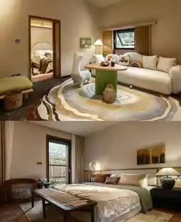 There are a total of 33 guest rooms. Inside each guest room, every window, every decoration, every corner, carries endless yearning for history, humanities, mountains and rivers, and pastoral life. The designer uses a simple and comfortable design to enhance the quality of travel accommodation. The independent bathtub allows you to wash away the fatigue of your journey. Some room types also have independent courtyards and hot springs, allowing you to relax and unwind.