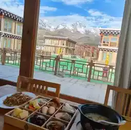 After driving for more than four hours🕓🕓🕓 from Litang, we finally arrived at Ganzi County🕍🕍🕍. The B&B we stayed in is about 30 minutes’ drive from the city center🚘🚘🚘. The tall snow-capped mountains along the road are refreshing. The B&B is located under the snow-capped mountains🏔️🏔️🏔️, and there is an exquisite artificial lake🌊🌊🌊, which complements the snow-capped mountains. There are cafes☕☕☕ and restaurants in the community, all of which are run by the original residents. They hope that the rise of tourism can help the local people's livelihood and help the local economy grow.