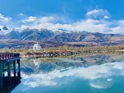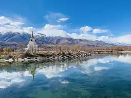 The surrounding scenery is as beautiful as a picture scroll. The snow-capped mountains in the distance tower into the clouds. The snow on the top of the mountain that never melts all year round shines with silver light under the sunlight, like giants wearing silver crowns, guarding This sacred land.