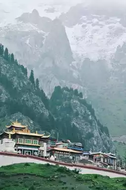 Along the way, grasslands, forests, snow-capped mountains, and temples alternate. Donggu Temple is built against the mountain, housing many thangka paintings, golden Buddha statues, and relics from the Ming Dynasty. Shortly after passing Donggu Temple, you'll reach the foot of Nailong Mountain, standing at 4,671 meters above sea level. Though not extremely high, it is majestic, covered in dense forests, layered peaks, and even millennia-old karst caves. Crossing the 4,580-meter-high pass and descending to the base, you'll find pristine forests lining the roadside.