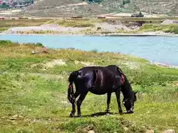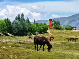 Herds of horses graze leisurely by the riverside under the snowy peaks - making city milk seem ordinary in comparison.