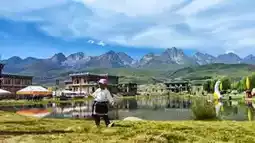 Backed by snow-capped mountains, the hotel sits amidst barley fields that turn golden during the August harvest season, truly living up to the region's reputation as the "Granary of the Plateau."