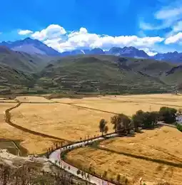 Facing the Yalong River, the drive from Ganzi town to the hotel passes through hundred-acre barley fields showcasing bountiful harvest scenes that bring a profound sense of fulfillment.