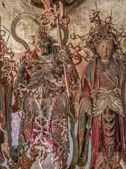 ✅The most eye-catching thing in Tiefo Temple is the Buddhist colored sculptures in the main hall. This group of colored sculptures totals 27 (also said to be more than 30), including Sakyamuni Buddha, Manjushri Bodhisattva, Samantabhadra Bodhisattva, and twenty-four celestial beings. These colored sculptures are vivid and peculiar, with different expressions, lifelike, showing the rich imagination and superb artistic creativity of ancient craftsmen. In particular, the twenty-four celestial beings surrounding the Buddha Hall, with their non-mainstream shapes and exquisite skills, are known as hidden treasures.