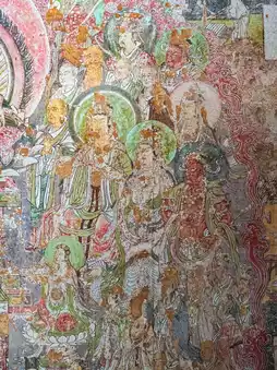 The murals of Kaifa Temple cover a total area of 88.2 square meters. The east wall depicts the Avatamsaka Sutra, with four murals in total. The west wall and the west side of the north wall depict the Sutra of Repaying Kindness, with four murals in total. The east side of the north wall depicts the Sutra of Birth, with one mural. The murals feature many figures and delicate techniques, making them rare masterpieces.