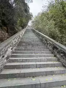 The temple is halfway up the mountain, and the continuous straight steps make people feel awe.