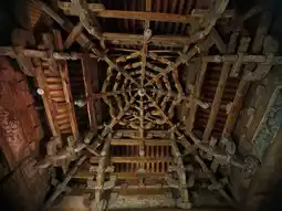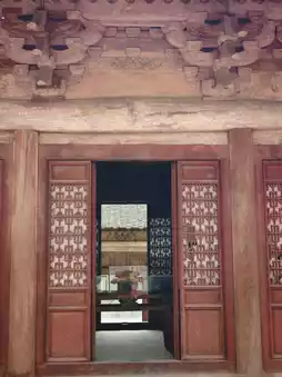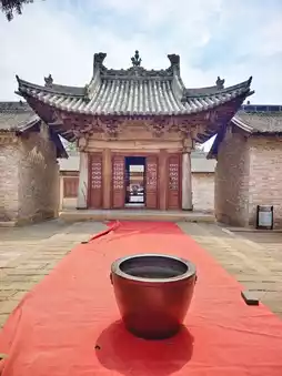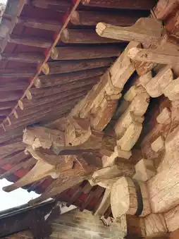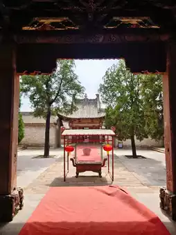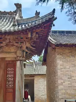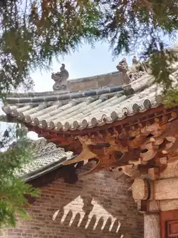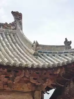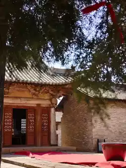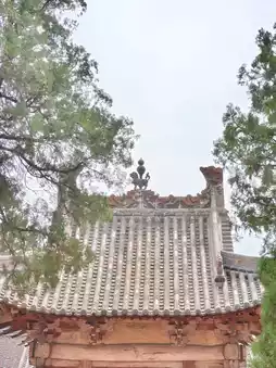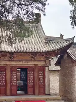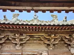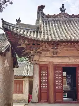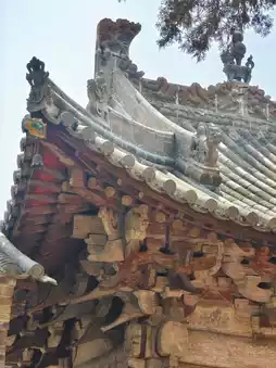 The Ancient Zhong Temple faces south with its back to the north, divided into upper and lower courtyards. Along the central axis are the mountain gate, the No-Beam Hall, and the main hall, with wing rooms and side halls on both sides. Outside the mountain gate, there are four-room eastern and western opera stages. On the west side of the mountain gate, there is a brick-arched side entrance with the inscription "Yandi Zhong Temple," which was originally the entrance to the temple. The No-Beam Hall, also known as the Crown Prince Hall, is the main building of the Ancient Zhong Temple. It is a single-bay square structure with a xieshan (hip-and-gable) roof, five-tier bracket sets with downward cantilevers, round wooden columns, and large architraves. The roof has nine ridges and is covered with ordinary barrel tiles laid in an upward-facing pattern.