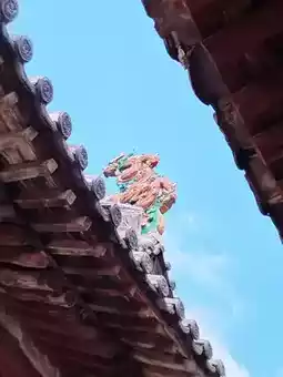 Guzhong Temple, also known as the Yan Emperor Temple: Highlights include the Crown Prince Hall, a Yuan Dynasty relic also called the No-Bracket Hall, featuring a covered caisson ceiling with exquisite and unique structure.