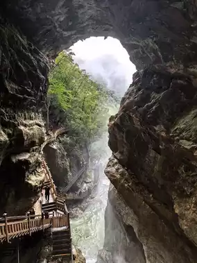 Mishan Dinglin Temple: According to the cultural relics protection staff, the grotto came first, followed by the temple. The grotto dates back to the Northern Wei Dynasty, while most existing buildings are from the Ming and Qing Dynasties. Highlights include the mountain gate’s double-eaved, hip-and-gable style two-story pavilion and the lotus caisson ceiling on the second floor.