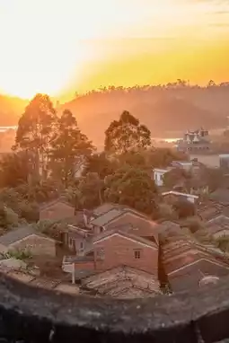 On the rooftop of the diaolou in Zhaoqing, I watched a healing sunset in the countryside