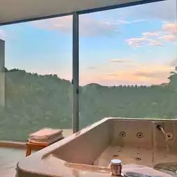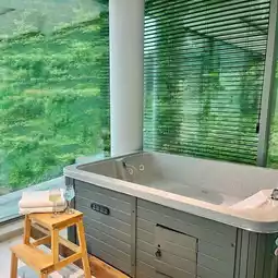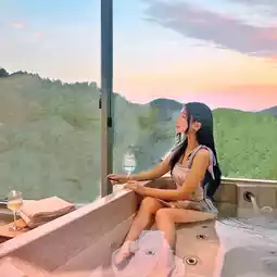 I found a private pension near Seoul with a #naturalgroundbedrock jacuzzi and #forestview🥰