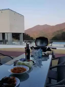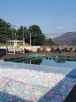 🤍 Since it is in the mountains, the accommodation has a nice mountain view, is quiet, and the grounds are wide, so it was good for walking! There are photo zones everywhere! It is hard to find accommodations that can accommodate 6 people, but it was good that 6 people could use it! The swimming pool is filled with water only in the summer, and the ball pit is filled in the other times, but it was fun, and it would be even better if you come in the summer and play in the water:)