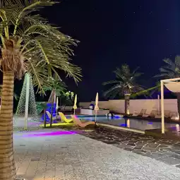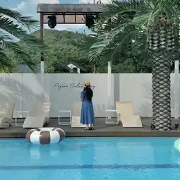 The outdoor pool is also great with a Southeast Asian atmosphere with palm trees