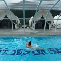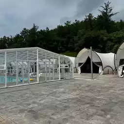 A newly built luxury glamping site with a size of 4,500 pyeong, forests in front and behind, a swimming pool that can be used all year round, a private barbecue party site, a fire pit, and a cafe and store exclusively for guests are also in operation, so it was great!!!