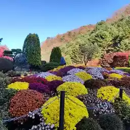 Buy a ticket (11000 won/person) and walk into the park to see the marked garden and take a photo📷 point. Because it coincides with the autumn chrysanthemum exhibition, here specially put a lot of various different chrysanthemum shaped jewelry, such as: butterfly, peacock, angel wings, etc., and to match the evening tourists to sightsee, jewelry surrounded by lamp beads, so that the contour of the items in the evening more prominent bright.
