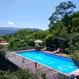 Even the lights come on at night... There's a valley and a swimming pool nearby, so I think it would be perfect for a summer vacation.