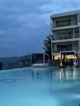 The entire pool faces mountain views + Hantan River. The water in the pool is warm, you won't get cold when you get into the water