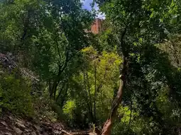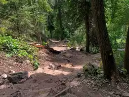 Scenic Hike: A 1.2-mile trail climbs through forested paths and waterfalls to the lake.