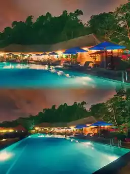 The resort's restaurants use ingredients sourced from their own organic fish farm, guaranteeing freshness and healthy options. Alu Alu Seafood Restaurant offers Chinese seafood feasts, while Macac Restaurant serves Western cuisine to satisfy all palates. Enjoying breakfast on the terrace as the sun rises is a truly divine experience.