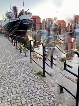 After a quick stop at the Neptune fountain we then walked down the very wide street of Długi Targ (full of classy looking restaurants and bars) to the promenade along the Motlawa river front, over the Green Bridge and back up to the National Maritime Museum to take a closer look at the Sołdek, the first steamship build in Gdansk after the war.