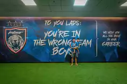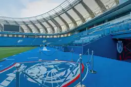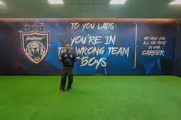 ✔️ The most impressive thing is that the configuration, function, size and decoration of the home and away team locker rooms are exactly the same. The only difference in the home and away team indoor warm-up area is the slogan on the wall. The away team writes "Brothers, you are in the wrong team, good luck"