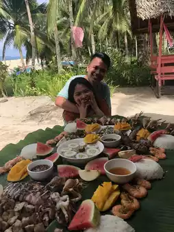Sugba Lagoon. Within the lagoon is a two-story docking area where you can stay and rent a table for PHP 50. The cool, turquoise waters seem to invite everyone to explore the lagoon’s site, and there’s equipment available to do just that. There are paddle boards, canoes, and snorkeling paraphernalia available onsite for rent. There’s also a diving platform you can use for free. Entrance fee: P50.