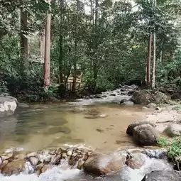 Sungai Sendat Waterfall is a popular recreational forest in the Ulu Yam Baharu district of Selangor state. You can get to the waterfall from the Genting Highlands.