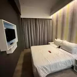 Hotel room is small and nimble with a queen size bed, equipped with a tv, phone, mini fridge plus an attached bathroom 🚽. Just leave the window 🪟 open and u will get to enjoy the cooling breezes n air con like weather between 17 to 21 degree.