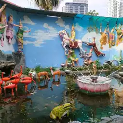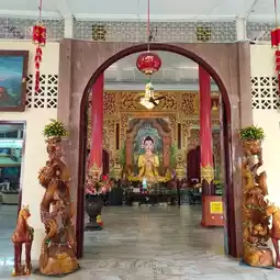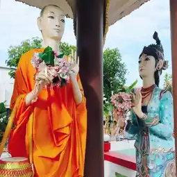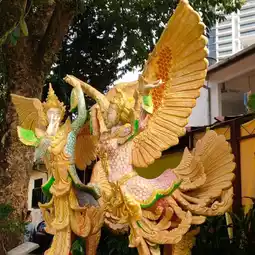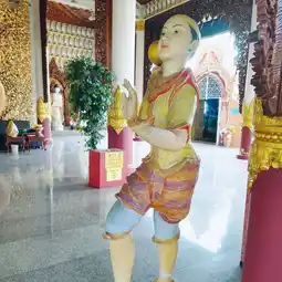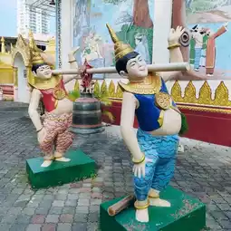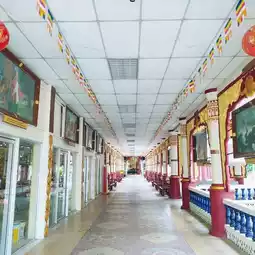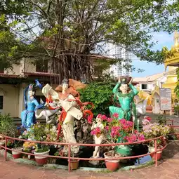 Wat Thammikaram Burmese is located opposite Wat Chaiyamangkalaram. It is a spacious and shady area. There is a standing Buddha statue in front of the prang to stop by the relatives. At the back, there is a walkway to the temple. At the back, there is a place to worship and make merit. There is a fish pond with fish and turtles. There are various statues decorating the place beautifully. If anyone comes to Penang, I recommend you to stop by here. I tell you that it is very beautiful.