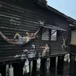 Chew jetty is a floating village comprised of wooden houses on stilts still inhabited by Chinese families and was established in the mid-19th century. We walked to Chew Jetty after a day of exploring George Town. It was already dark by then, but we were able to go inside and walk around before closing time at 9pm. Some vendors were still working, selling souvenirs or snacks. There were also murals and temples around.