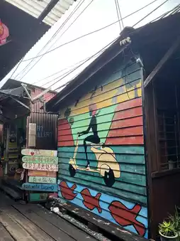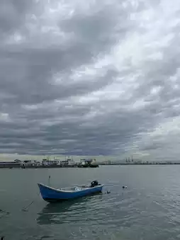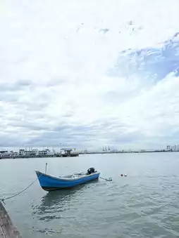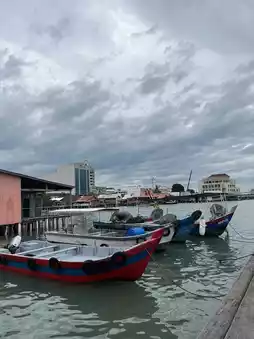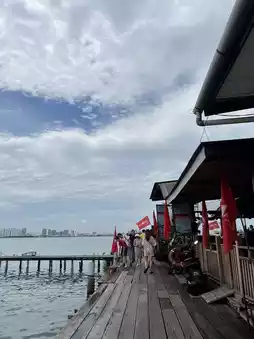 ✈️ Walk to the end of the road, there will be boats parked in a row. There is a shrine by the sea. Sit and enjoy the sea view. You can also see the Penang Bridge. And here, there are unique paintings. Don't forget to stop and take a picture.