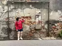 When visiting Penang, one must not miss the opportunity to take photos with the street art on these walls. The art can be found everywhere, from large walls to small corners of houses, making it feel like a treasure hunt. Each piece of street art is relatively close to one another, so you can walk from one to the next without much effort. Some artworks have small 3D elements, while others are simply paintings. As you walk from one piece to another, you also get to see the local houses and observe the daily lives of the residents.