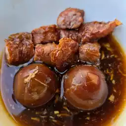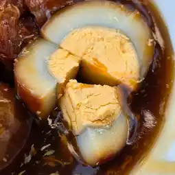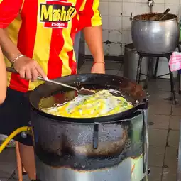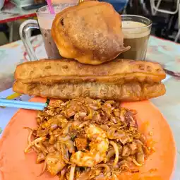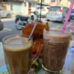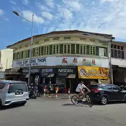 Currently, his grandson has taken over the business to preserve the delicious legacy. The shop is located on the corner of Lebuh Kimberley Road in Georgetown. The atmosphere inside the shop is lively with people coming to drink coffee and food. Recommended menu items include tea noodles, braised noodles, braised eggs, hot coffee, and iced Milo. The total cost of this meal was 22.90 RM or about 183.20 baht. The taste is delicious, everyone. If anyone visits Penang, I recommend it. The shop is open every day from 7:00 AM to 3:00 PM.