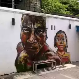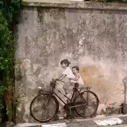 Then, walk another 200 to 300 meters and you will find a collection of wall art, which is Armenian Street Art. The most memorable image for tourists is the image of a boy and girl on the wall, and there is a real bicycle placed close to the wall to make it look like the two children are really sitting on the bicycle. This image is beautiful and has a lot of dimension. Many shops have printed the image on shirts, bags, hats, and key chains as souvenirs for tourists to buy.